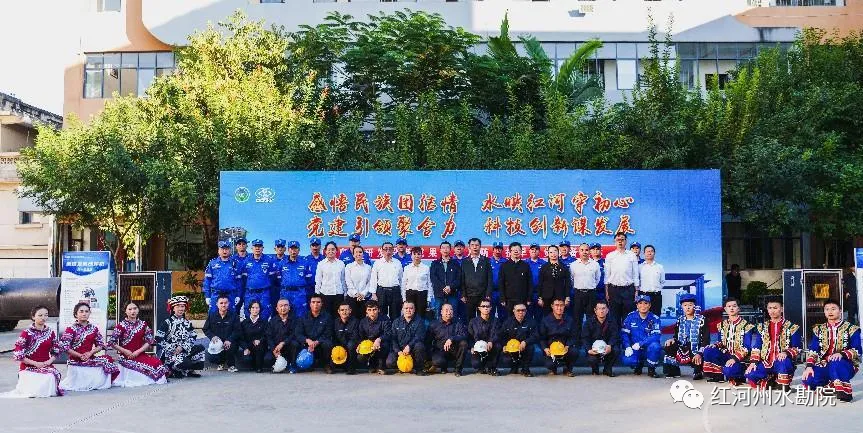 为全面贯彻落实党的二十大精神,结合两院工作实际,州水勘院和州水规院于2022年11月28日至29日在云南省红河州水利水电勘察设计研究院举办了“感悟民族团结情 水润红河守初心 党建引领聚合力 科技创新谋发展暨自主研发设备成果汇报及防汛抗旱物资装备展示”主题党日活动。中国水利工程行业协会副会长兼秘书长周金辉、中国水利工程行业协会信用管理部编辑杨清波、云南省水利厅乡村振兴办常务副主任成之然,水利部水利水电出版社云南办事处主任苗羽强、红河州水利局党组书记、局长李颖及两院职工参加活动。