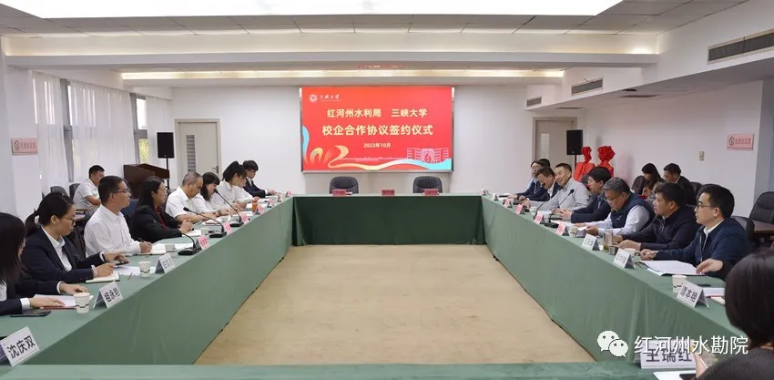 10月15日,红河州水利局党组书记、局长李颖带领云南省红河州水利水电勘察设计研究院(简称“红河州水勘院”)、红河哈尼族彝族自治州水利水电工程地质勘察咨询规划研究院(简称“红河州水规院”)、滇南水安全与水科学协同创新研究院(简称“滇南创新院”)一行到三峡大学洽谈合作并签订校企合作协议。三峡大学副校长陈和春、学术委员会主任委员、原党委书记李建林出席签约仪式。